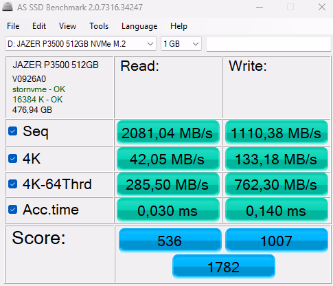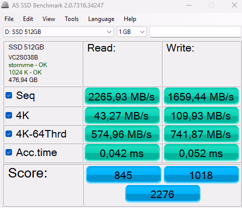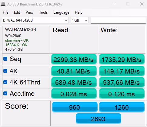 | AS SSD (score) | 1782 | 2276 | 2693 | 4058 | 6907 |