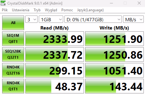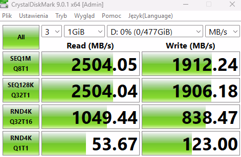 For the tests, I used Topton TOPC miniPC with Ryzen HX 370 and two M.2 slots (PCIe 4.0 x4) running the latest Windows 11. The comparison charts look like so: