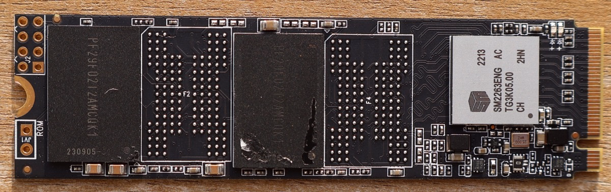 drives were purchased for around $30 each more than a year ago to be used as cheap test/temporary drives. They are DRAM-less SSDs, meaning they don't have a RAM/HBM memory chip on board to store the FTL mapping table or cache incoming data. This offers less performance but makes the drive cheaper to make.