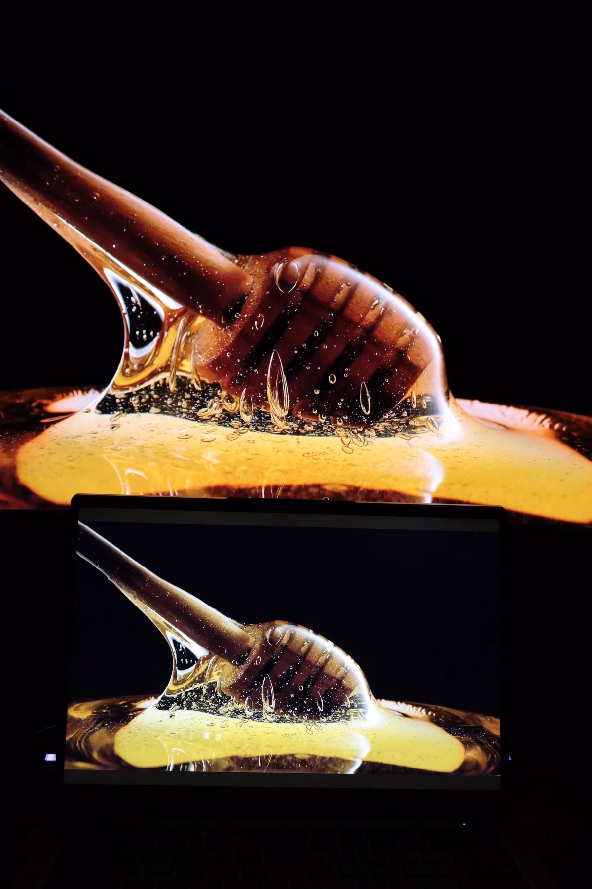 Below are DSLR shots (Canon R50) of two displays in a dark room to showcase the panel performance: